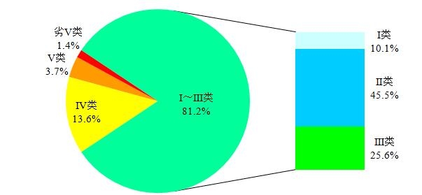 圖2 2020年1-4月全國(guó)地表水水質(zhì)類別比例